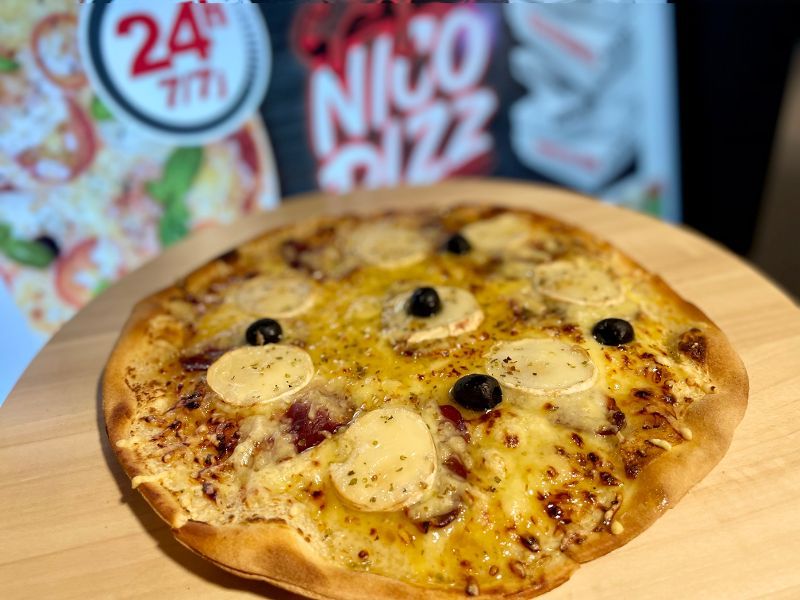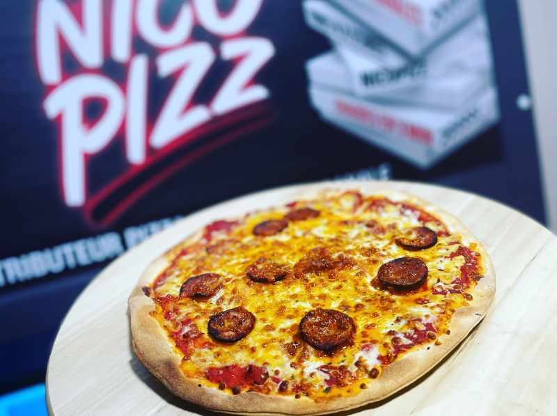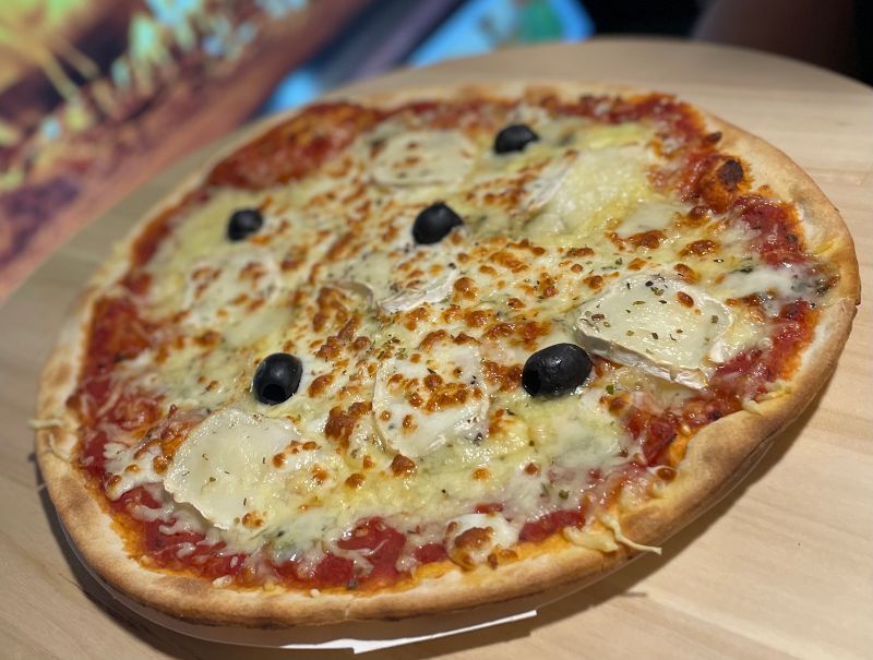 10 variétés de pizza sont disponibles actuellement ( fromage, jambon, 4 fromages, peppéroni, brandade, poulet, reblochon, chèvre miel, et nutella).